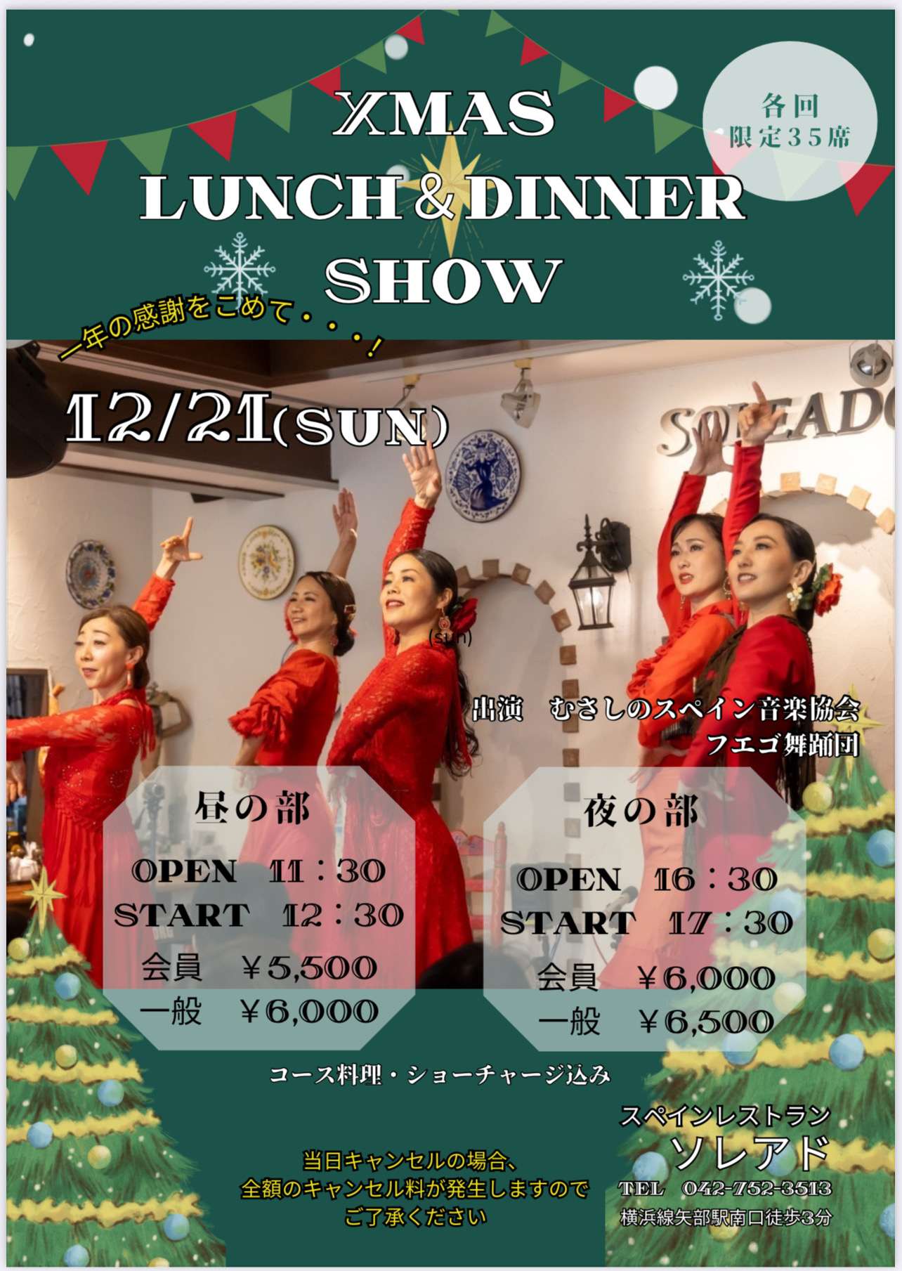 【フラメンコ】むさしのスペイン音楽協会 X’mas🎄ランチ&ディナーショー