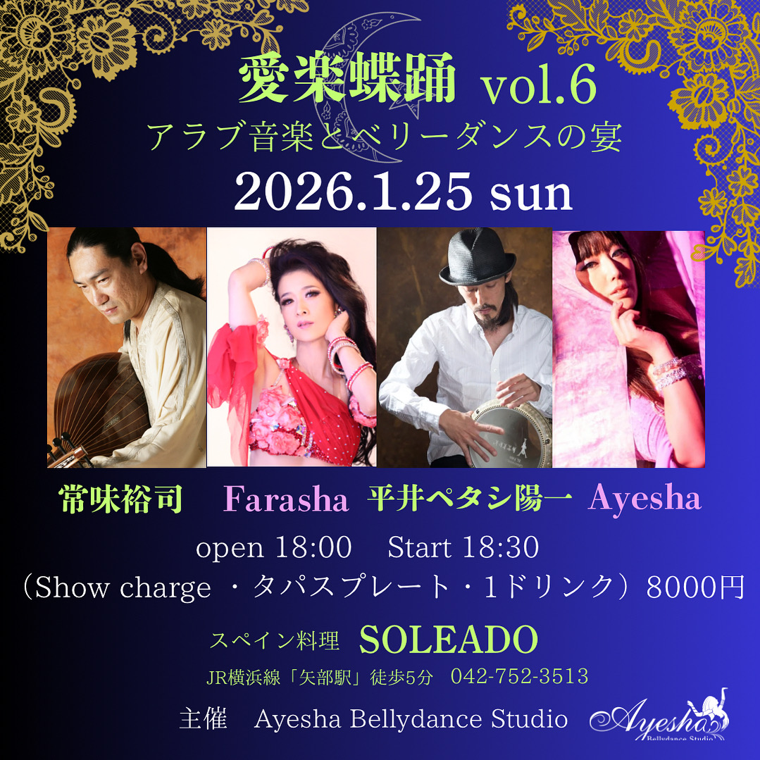 • 2026年1月25日(日)【ベリーダンス】🌹愛楽蝶踊vol.6 〜アラブ音楽とベリーダンスの宴🌹